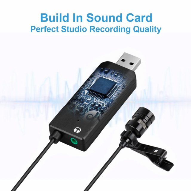 Clip-On USB Lavalier Microphone with Noise Isolation for PC & Mac